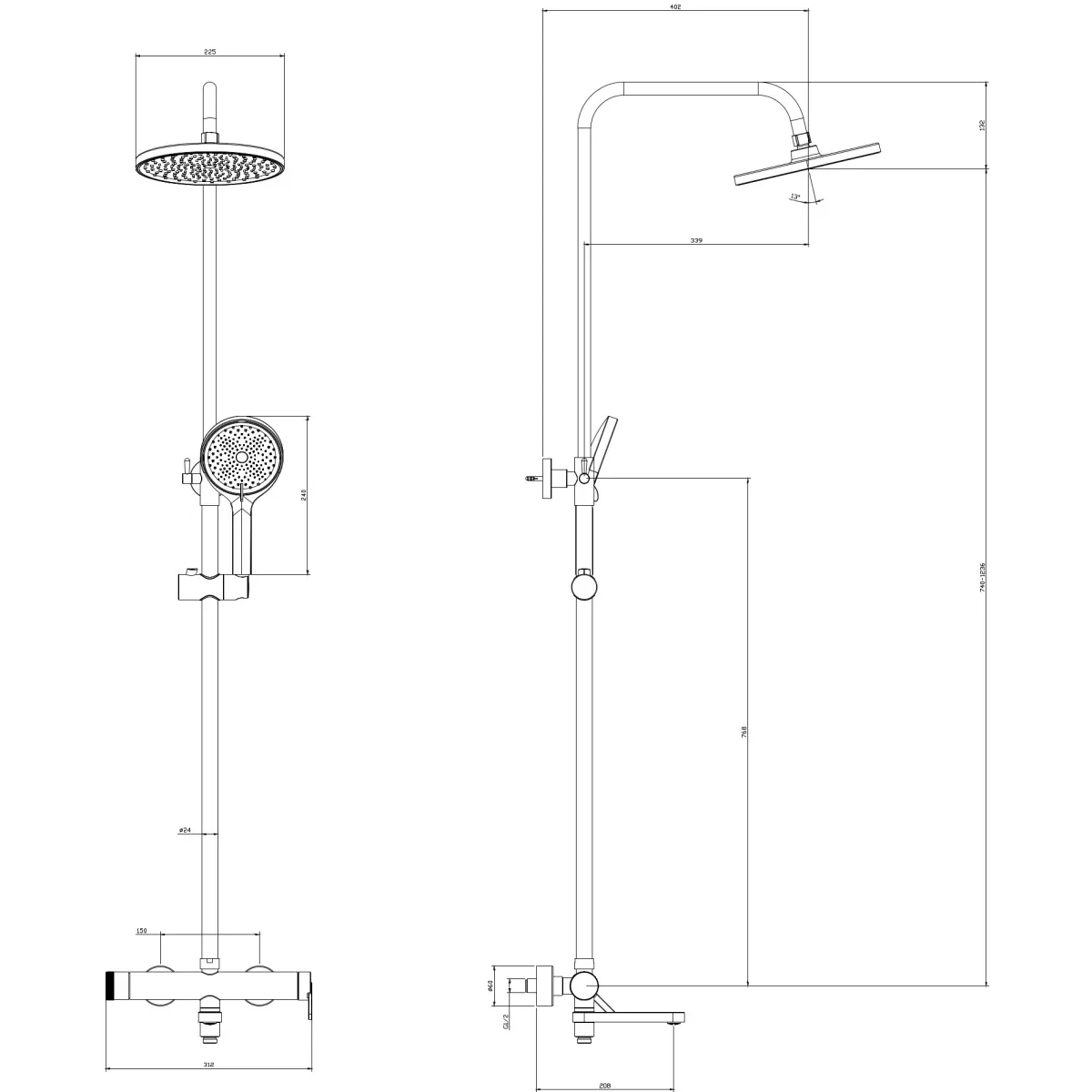 Размер верхнего душа, см:22.5