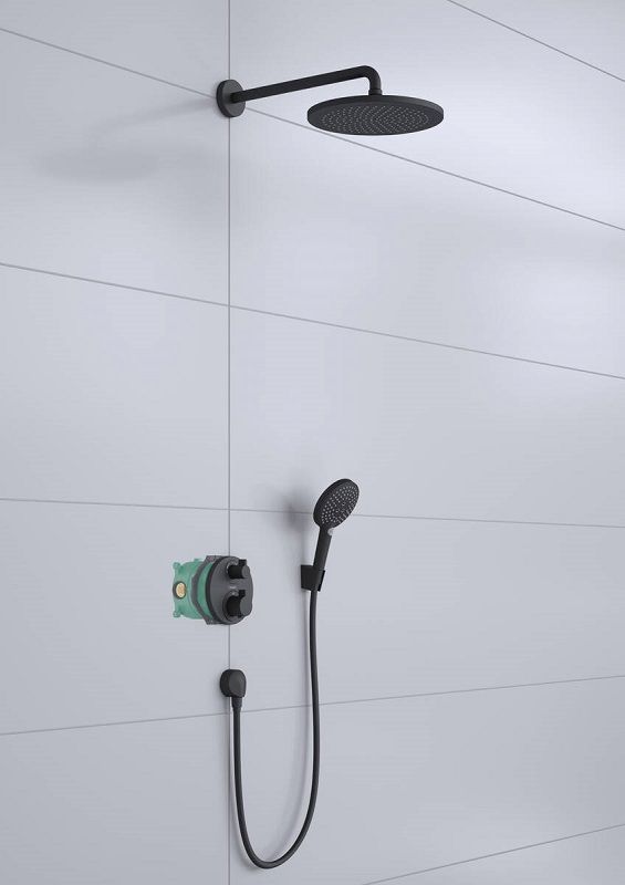 Душевая система Hansgrohe Croma, термостатическая, цвет чёрный матовый, 27961670Найдите свой собственный стиль ванной комнаты, воплотите в жизнь индивидуальное решение и наслаждайтесь полученным результатом. Неважно, хотите ли вы сделать небольшой ремонт или полностью изменить архитектуру ванной комнаты – здесь вы можете выбрать свое стилевое направление. Профессионалы из компании Hansgrohe дадут вам вдохновение и помогут сориентироваться в многообразии стилей. Специалисты разработали концепции, не подверженные влиянию времени, которые словно созданы специально для вас. Чтобы дать возможность раскрыться вашему вкусу. Чтобы интерьер вашей ванной комнаты по-настоящему отражал вашу индивидуальность. В состав входят: верхний душ с кронштейном, ручной душ, термостат для душа, душевой шланг, держатель, шланговое подсоединение.Основные характеристики:состоит из: верхний душ, ручной душ, термостат для душа, штанга для душа, держатель для душа, шланговое подсоединение (27961670 HG Set 8 в 1: 26220670 + 27413670 + 26530670 + 15758670 + 01800180 + 28331670 + 27454670 + 28272670)