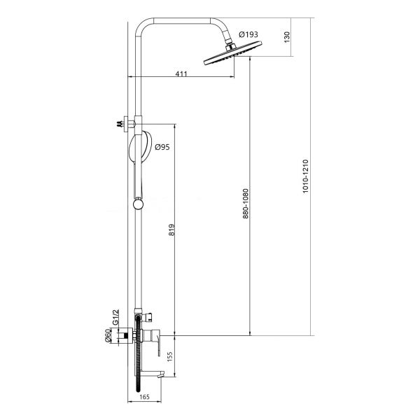 Комплектация:смеситель, верхний душ, штанга, лейка, шланг, эксцентрики, декоративные чашки