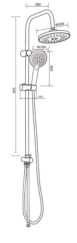 Душевая система в цвете черный матовый: верхний душ (d200 мм) создаёт эффект тропического дождя, что дарит непередаваемые эмоции во время ежедневных банных процедур. Ручной душ 100 мм (3 режима) на гибком полутораметровом шланге (в металлической оплетке) с защитой от перекручивания. Держатели верхнего и ручного душа с регулировкой угла наклона, штанга 970 мм. Подвижные детали отличаются долговечностью. Фиксируется душевая система непосредственно на стене, что позволяет рационально использовать ограниченное пространство ванной комнаты. Модное на сегодняшний день покрытие чёрного цвета, за которым просто ухаживать мягкой салфеткой, получено порошковой окраской с многоступенчатой системой подготовки и высокотемпературной обработкой.