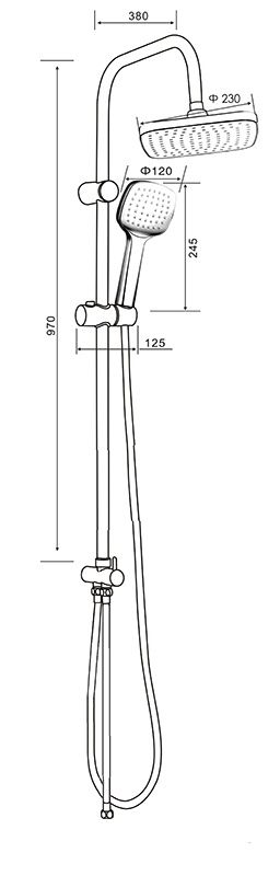 Душевая система Orange T19-944cr: однозахватный смеситель для ванны с термостатом, верхний душ 230х230 мм с регулировкой угла наклона, ручной душ 120 мм - 1 режим струи, регулируемый по высоте и наклону держатель ручного душа, форсунки верхнего и ручного душа с функцией легкой очистки от известкового налета, душевой шланг 1,5 м с защитой от перекручивания, штанга с возможностью установки в старые отверстия, керамический дивертор. Цвет глянцевый хром.
