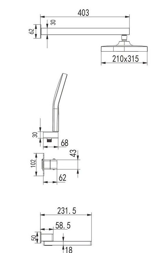 Душевая система с термостатом встраиваемая Rose R1095H, черный.Монтаж: внутренний (скрытый).Стилистика дизайна: современный стиль.Управление: термостат.Размер верхнего душа: 31,5x21.Форма верхнего душа: прямоугольная.