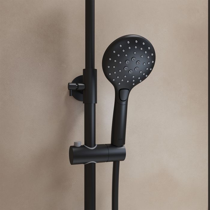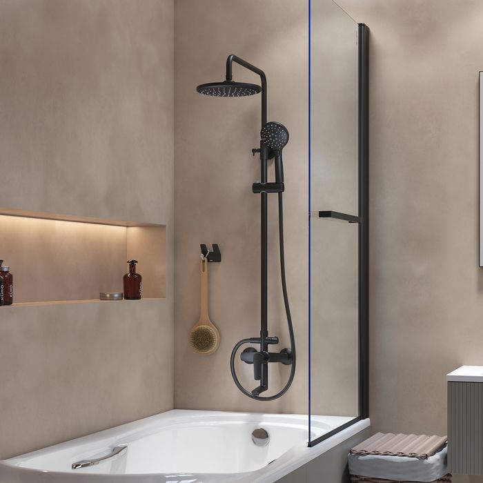 Смеситель с верхним душем из коллекции Ray в стильном черном матовом цвете – привлекательное, современное и практичное решение, которое будет органично сочетаться с любым дизайном ванной.