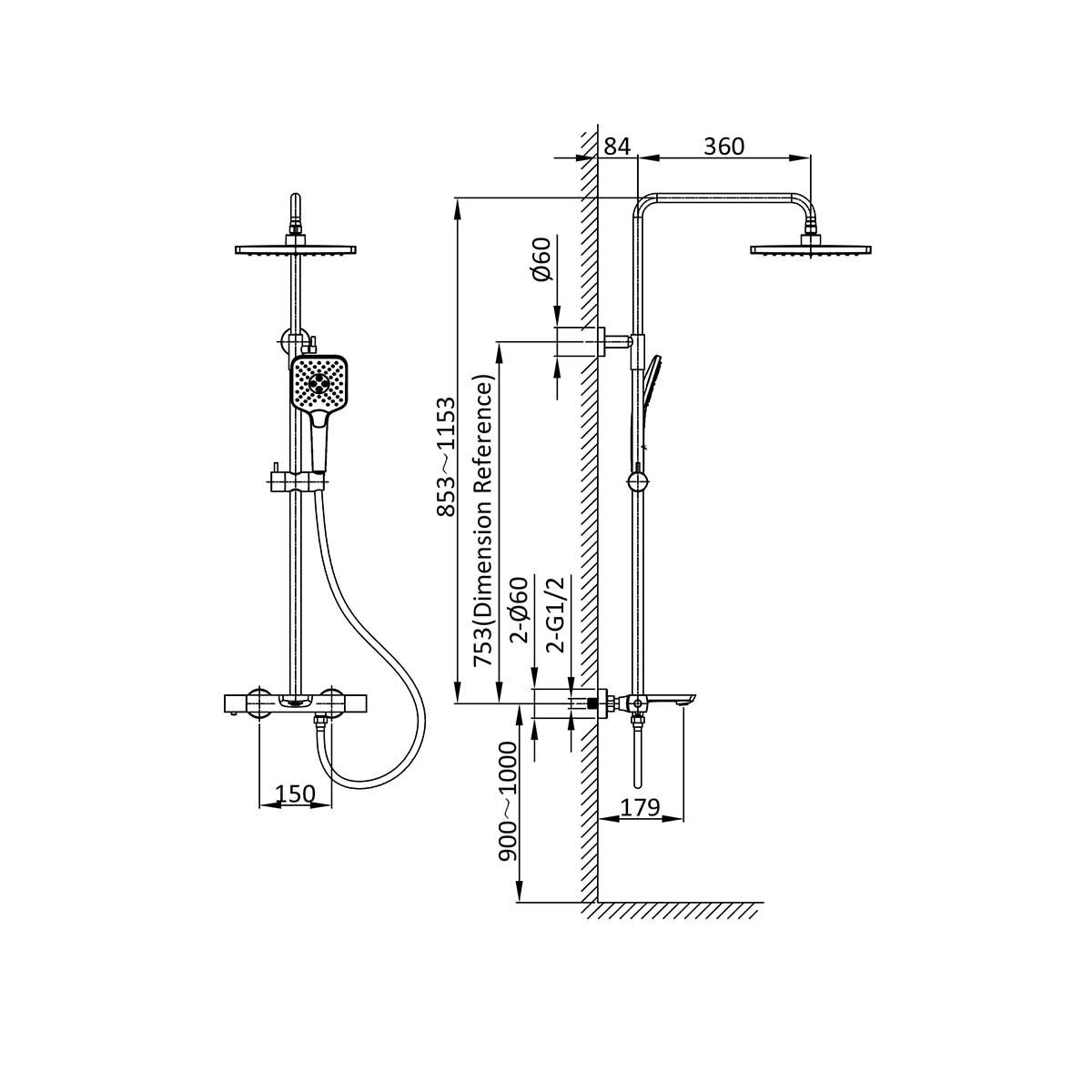 квадратныйРазмер верхнего душа, мм: