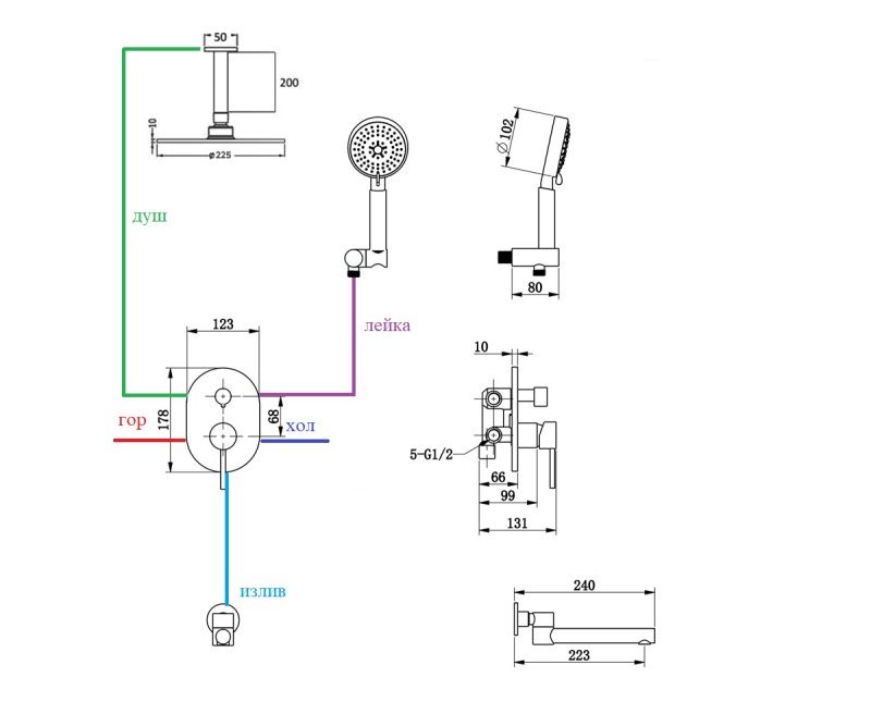 Душевая система встраиваемая Bronze de Luxe SCANDI 14582/1B, черный купить