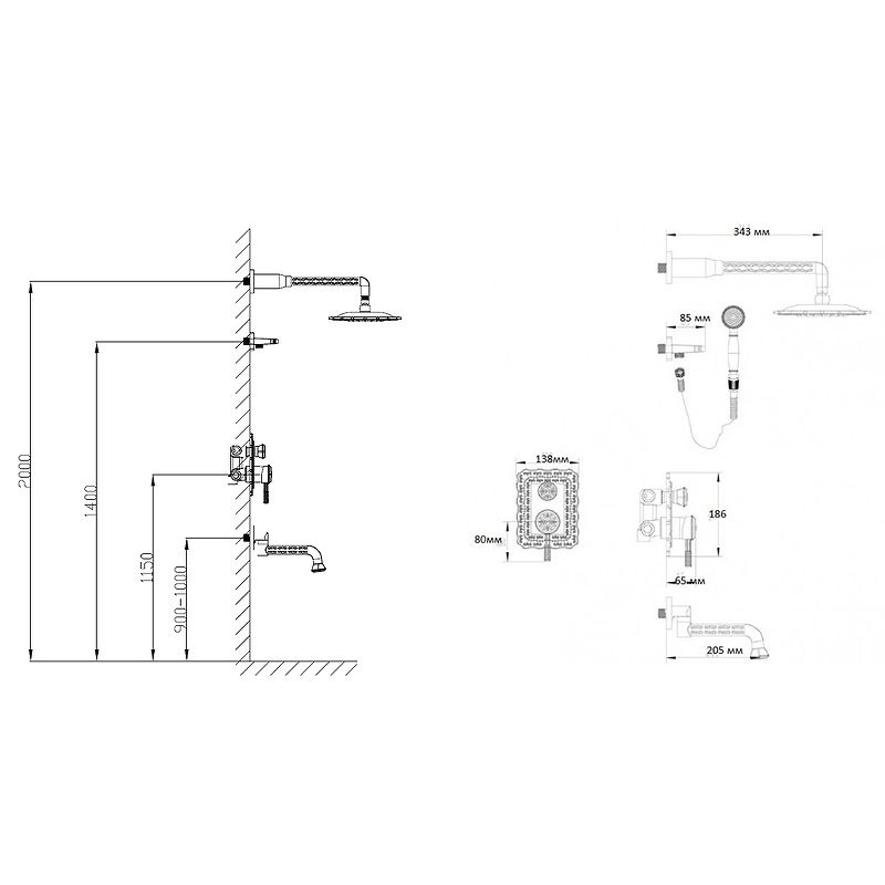 Душевая система встраиваемая Bronze de Luxe WINDSOR 10137DF, бронза купить