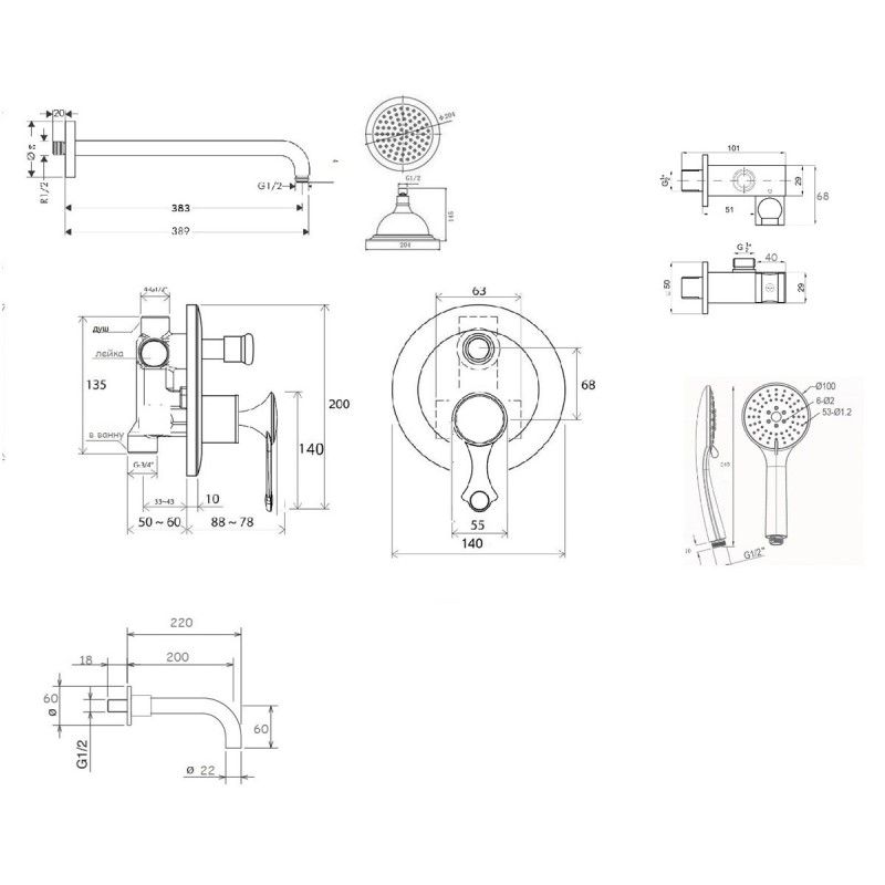 Душевая система встраиваемая Bronze de Luxe YASMINA NT800/B02, хром