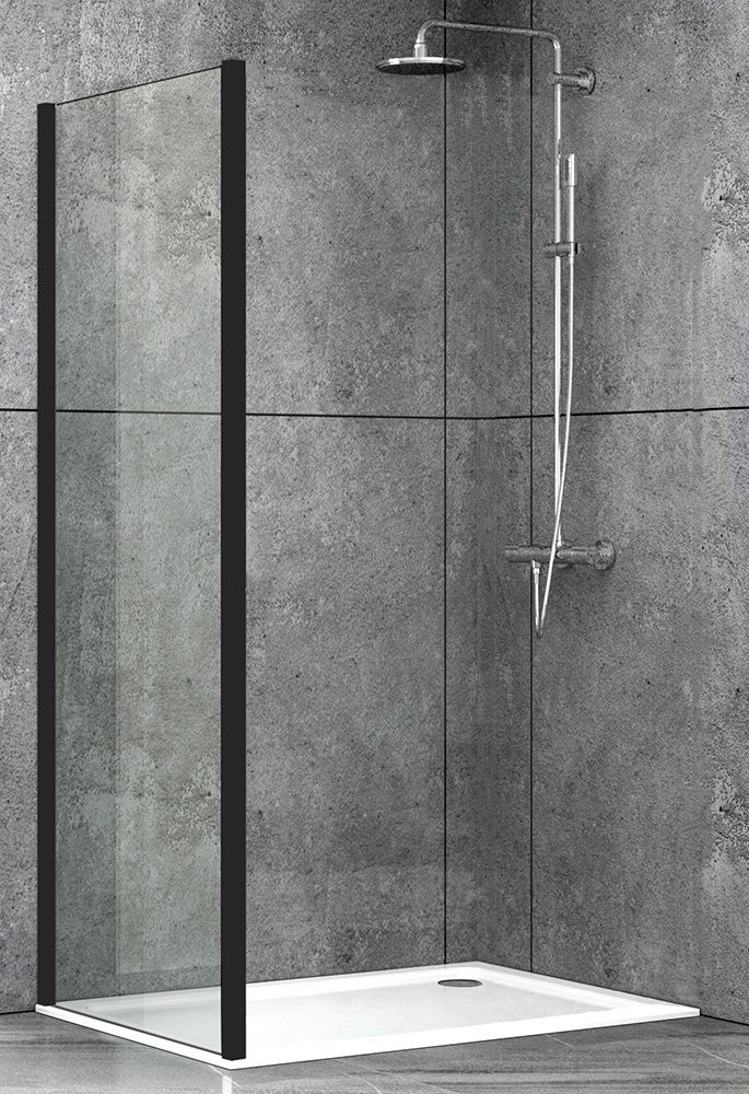 Неподвижная черная боковая стенка 70 см для душевого ограждения, может быть использована как перегородка, прозрачное стекло 6 мм.