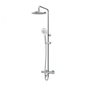 Продуманные детали для удобства использования: штанга регулируется по высоте в диапазоне от 880 до 1270 мм, обеспечивая комфорт для людей любого роста, шаровый шарнир в держателе верхнего душа позволяет регулировать угол его наклона, душевой шланг 1750 мм, верхний душ диаметром 220 мм, ручной душ диаметром 110 мм.Смеситель для ванны и душа с термостатом: термостатический картридж с высокочувствительным термоэлементом, стопором безопасности на 38 градусов, быстрой реакцией на изменения температуры или давления надежно защищает от ожога даже при внезапном отключении холодной воды.