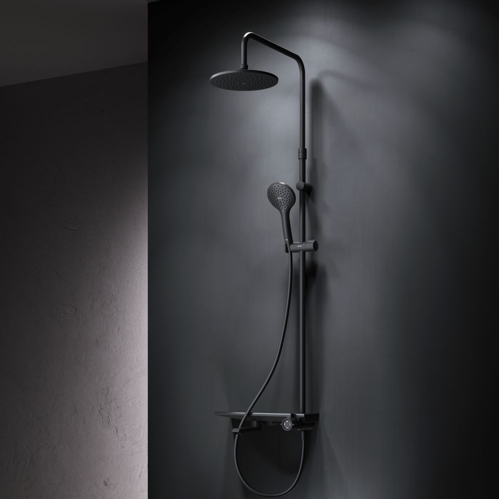 Душевая стойка Am.Pm Gem F0790722 с ванно-душевым смесителем-полкой чёрный купить