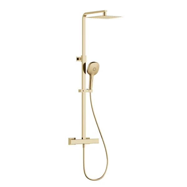 Душевая стойка AQUAme AQM8007BG с термостатом золото брашированное купить