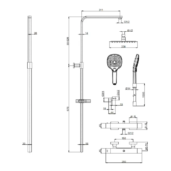 Душевая стойка AQUAme AQM8007GM с термостатом графит матовый купить