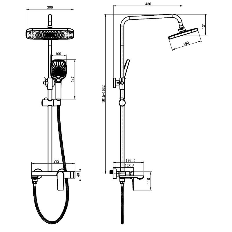 Душевая система Azario Arida с квадратным тропическим душем, керамический картридж, шланг 150 см, хром