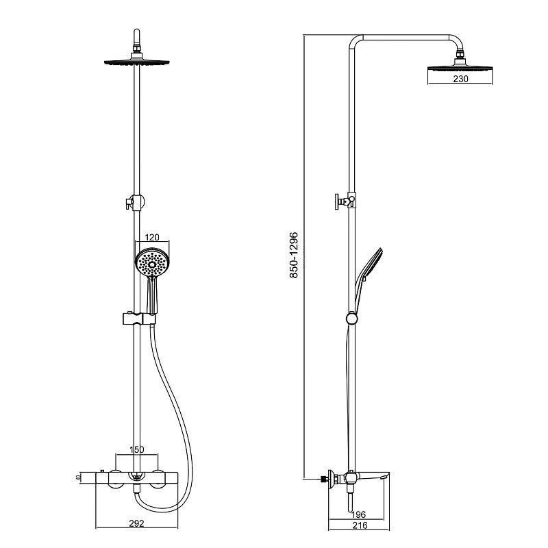 Галакси Душевая система с термостатом для ванны, хром AZ-67B47EV1-1DC1J19A-ZH3394A-HB1153C