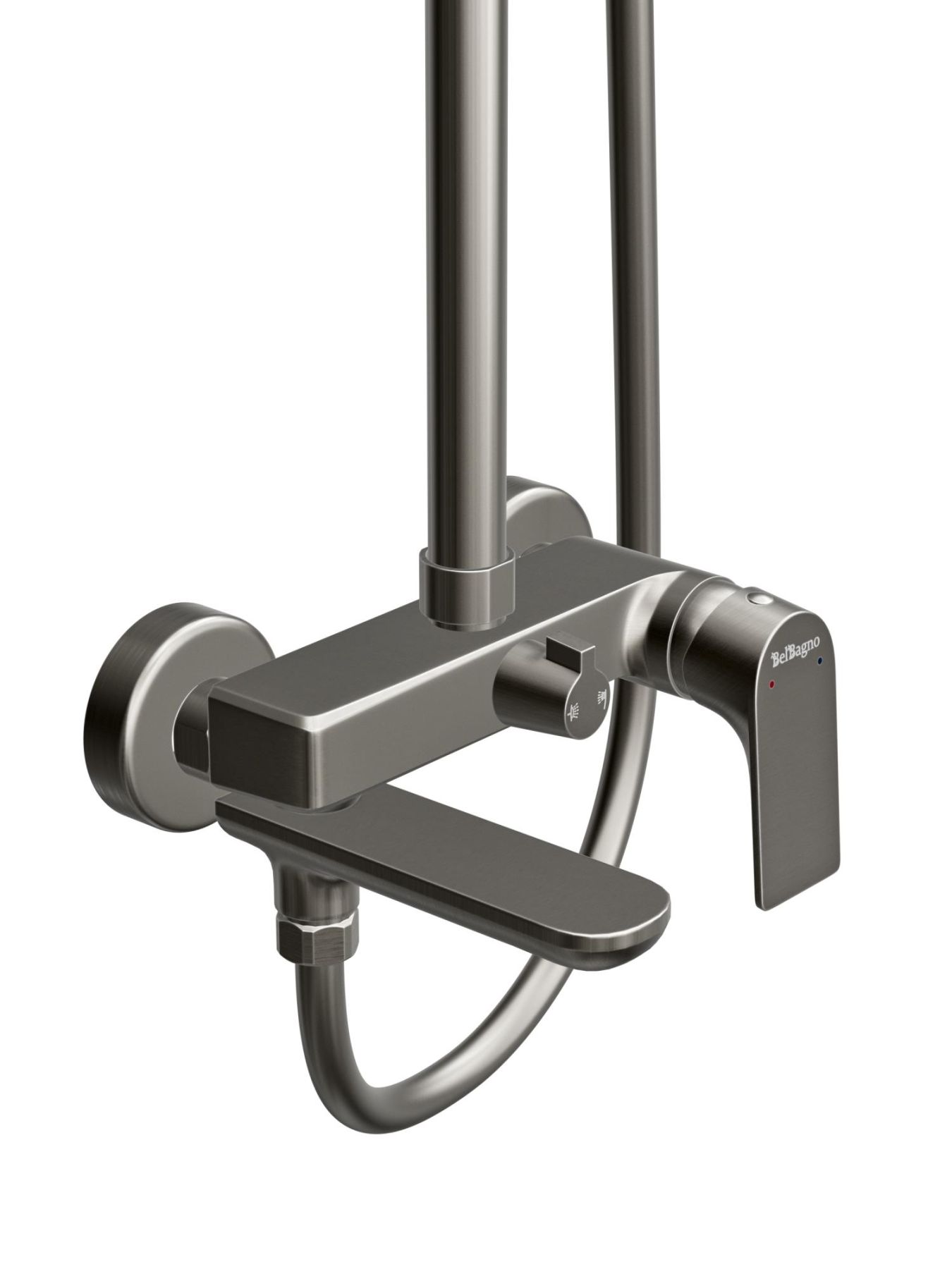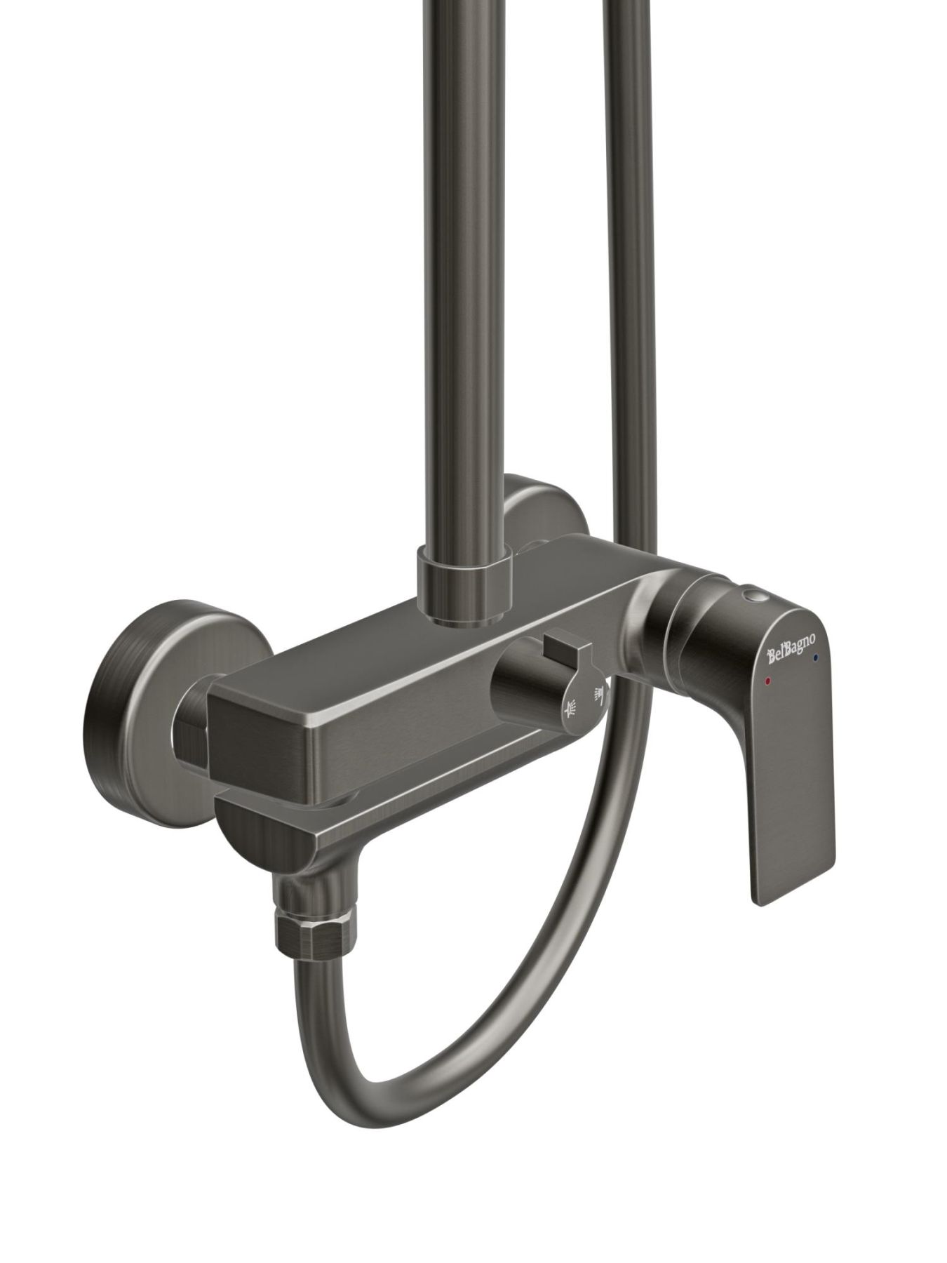 Душевая стойка BelBagno со смесителем и изливом, оружейная сталь MARINO-VSCM-GM