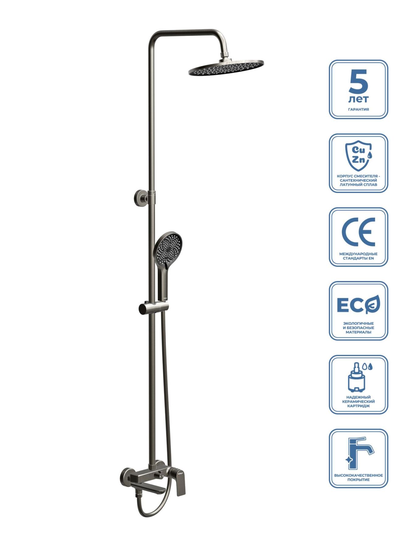 Душевая стойка BelBagno со смесителем и изливом, оружейная сталь MARINO-VSCM-GM купить