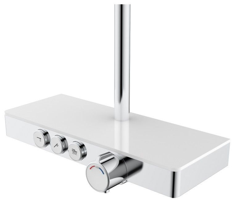 Душевая стойка BERGES MORANS обладает трёхрежимной системой и включает в себя: Верхний Душ «Тропический ливень». Ручной Душ и Излив для наполнения ванны.Система оборудована термостатическим управлением, что позволяет поддерживать комфортную и неизменную температуру воды, а так же оберегает от ожогов.Верхний душ диаметром 25 см обеспечивает комфортное принятие SPA процедур, держатель верхнего душа имеет размер вылета из стены 40 см.Шланг для Ручного Душа выполнен из мягкого пластика длиной 150 см, что обеспечивает долгий срок службы, а так же гибкость, необходимую, для удобного применения.Форма корпуса смесителя выполнена в виде полочки из закаленного стекла, позволяя комфортно хранить необходимые принадлежности для душа.Регулируемая стойка выполнена из нержавеющей 201 стали с гальваническим покрытием.Душевая стойка BERGES MORANS совмещает в себе удобство эксплуатации и современный эстетичный дизайн, позволяя создавать красивое и эргономичное внутреннее пространство всего помещения.Трехфункциональный термостатВстраиваемая системаЛатунный корпусСталинитовая пластина и пластиковая крышка для защиты от ожоговДушевой шланг 150 см из ПВХВерхний тропический душ 25см ABS пластикРегулируемая по высоте штанга из нержавеющей стали 110-155 смМатериал ручного душа: ABS пластикСистема против известковых отложенийЭкономия расхода водыСтандарт подводки: 1/2"Кол-во режимов ручного душа: 2