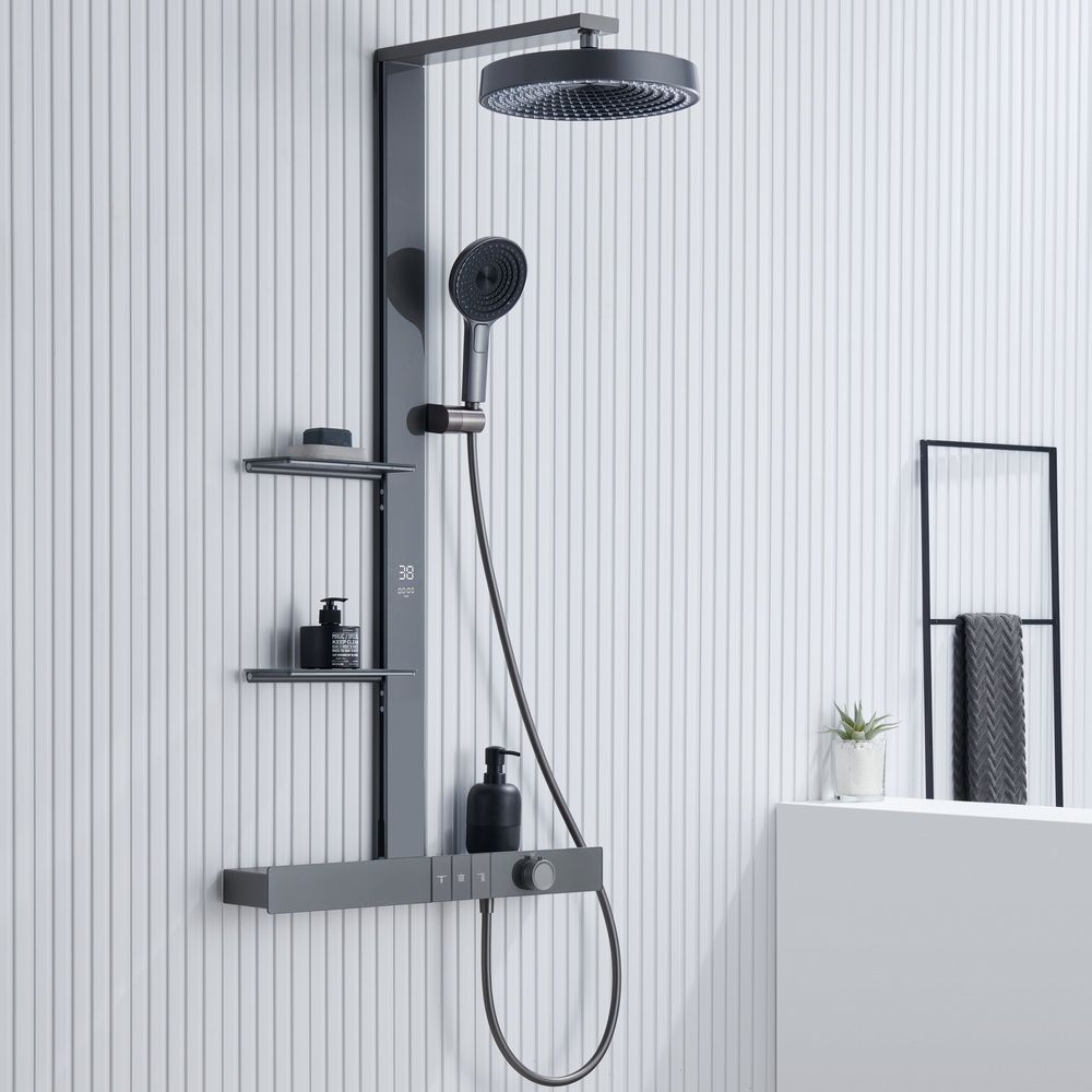 Особое внимание заслуживает держатель для ручного душа, оснащенный LED-дисплеем размером 70×24×1140 мм. Теперь вы можете контролировать температуру воды непосредственно во время приема душа!
