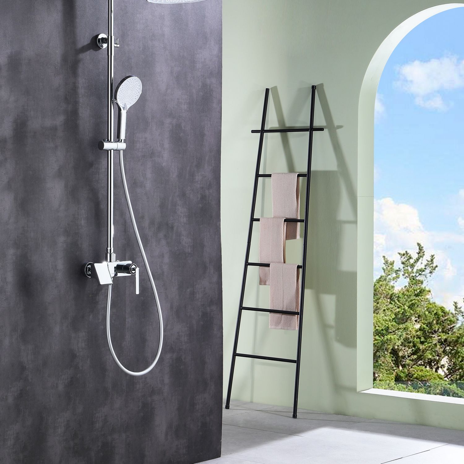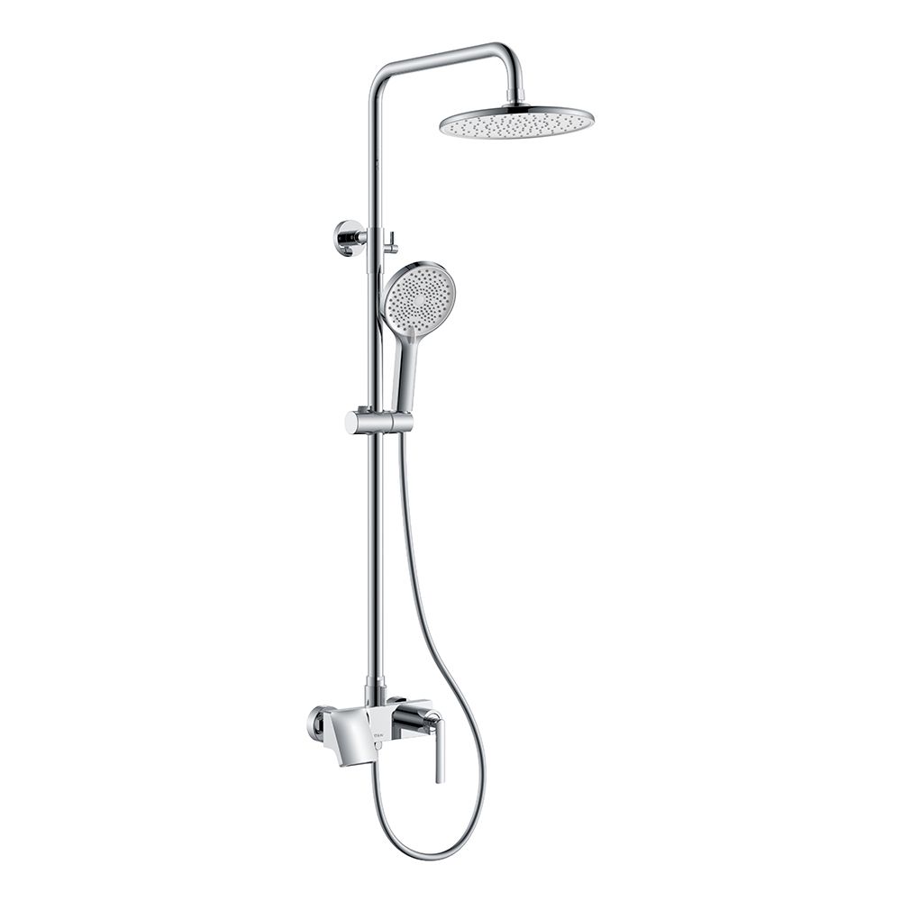 Душевая стойка в цвете глянцевый хром датского производителя Black&White. Корпус изделия произведен из сантехнической латуни – безопасного и коррозиестойкого сплава.Управление потоками и температурой воды выполняет керамический картридж повышенной пропускной способности. Из потребителей на комплекте установлен верхний душ, ручной душ, а также на верхней части корпуса под углом расположен каскадный излив для набора емкостей. Для выбора режима работы у основания стойки расположен поворотный дивертор выполненный в виде кольца с дополнительным выступом для удобства использования мокрыми руками.