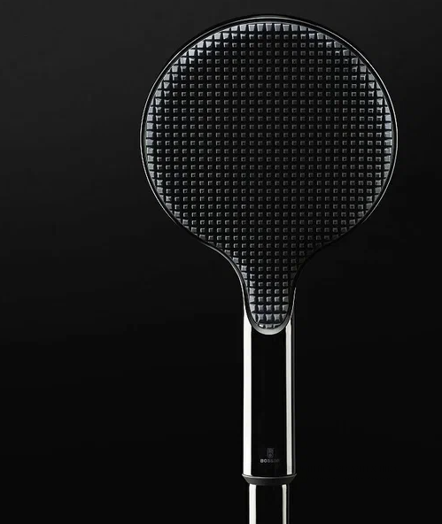 Bossini Apice душевая система: термостат, стойка с верхним поворотным душем 28 см, с ручным душем, цвет черный матовый.