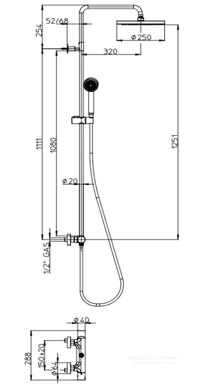 Хромированное покрытие не только придает системе стильный блеск, но и обеспечивает высокую устойчивость к коррозии и износу, что гарантирует долговечность и легкость в уходе. Настенное крепление системы обеспечивает компактное использование пространства, делая её подходящей для ванных комнат любого размера. Система оснащена удобным смесителем, который позволяет легко регулировать температуру и напор воды, обеспечивая максимальный комфорт во время использования.