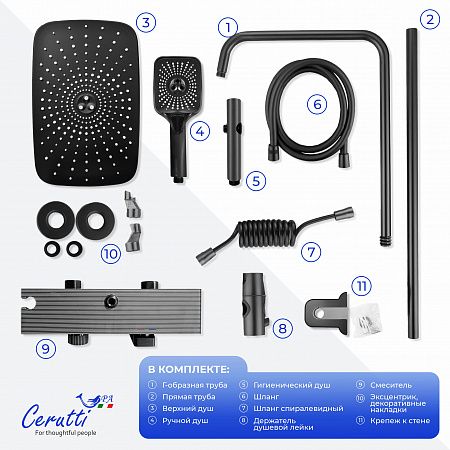 Душевая стойка Ceruttispa выполнена из качественного материала. Дизайн стойки разработан с учетом актуальных тенденций, поэтому она идеально впишется во многие популярные стили. В интернет-магазине Gidro-butik широкий выбор душевых стоек. Доставка по всей России!