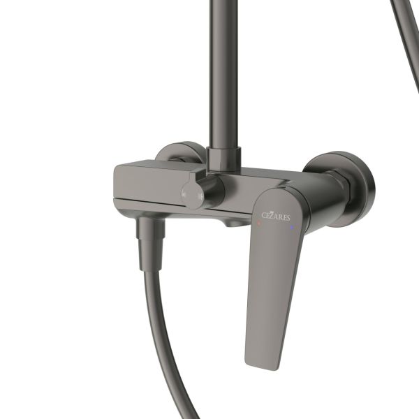 Душевая стойка Cezares со смесителем и изливом LINER-CVD-GM оружейная сталь