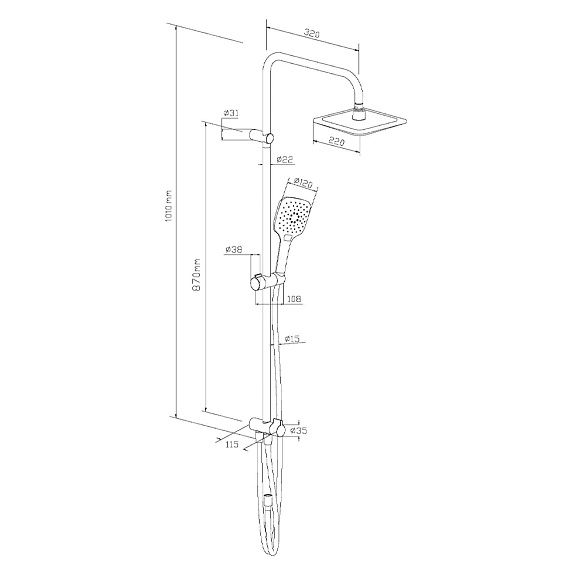 удлиненная штанга позволит установить душ на нужной для вас высоте;