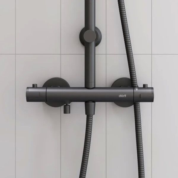 Душевая система Dorff New plus D0710500. Выгода в комплекте! Душевая система и смеситель для ванны и душа c термостатом по привлекательной цене. Душевая система Futura с тропическим душем, ручным душем с 3 функциями и длинным шлангом в 1500 мм - просто находка в своем сегменте. А стойки возможностью регулировки по высоте и шланги с защитой от перекручивания станут приятным бонусом для тех, кто ценит эргономичность и функциональность.Термостат душевых систем в элегантных современных размерах предотвратит от ожогов собрал в себе лучшие немецкие качества: стильный дизайн, компактные размеры, европейское качество, прочность и долговечность.Бренд Dorff