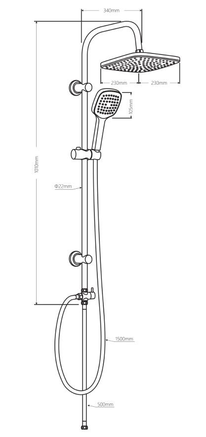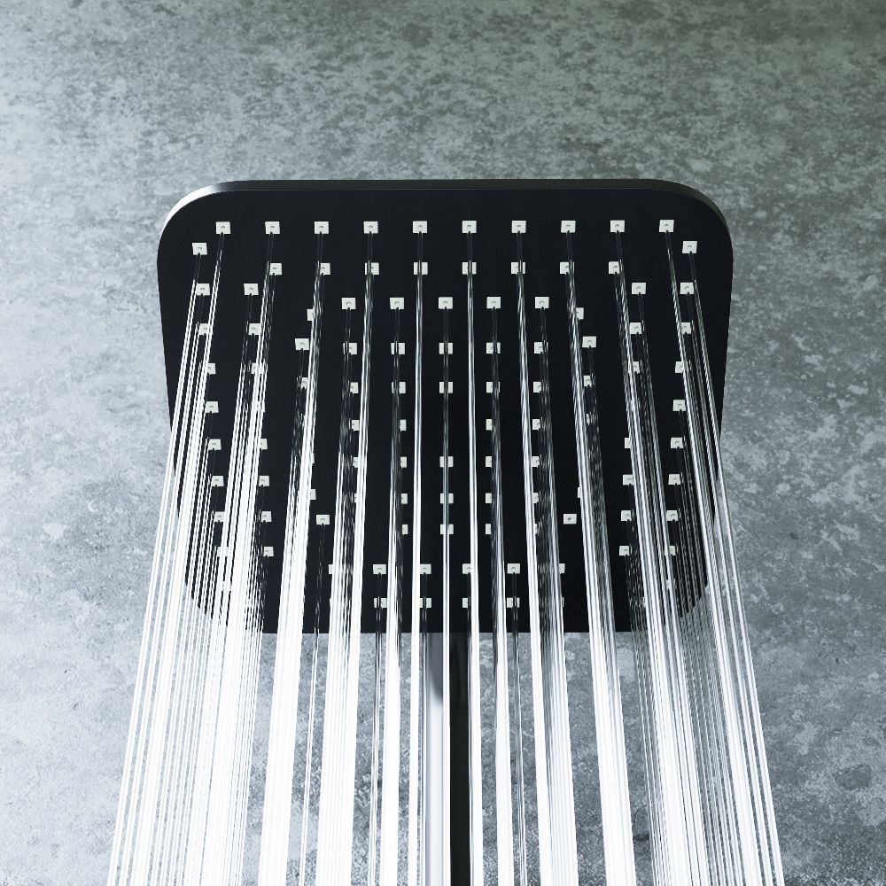 Стильные и большие квадратные лейки обеспечат комфортный напор воды, а слайдер ручного душа и крепление верхнего позволит настроить нужное положение.