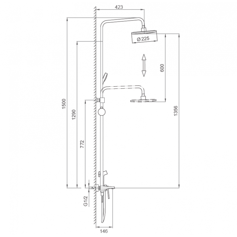 Верхний душ: Свыше 20 см