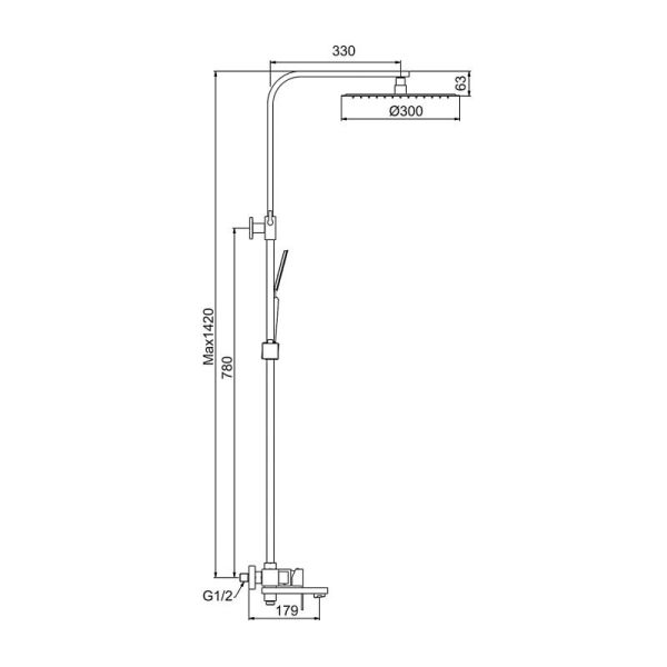 Размер верхнего душа, см:30