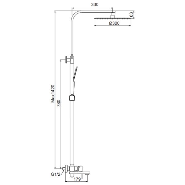 • Размер верхнего душа, см: