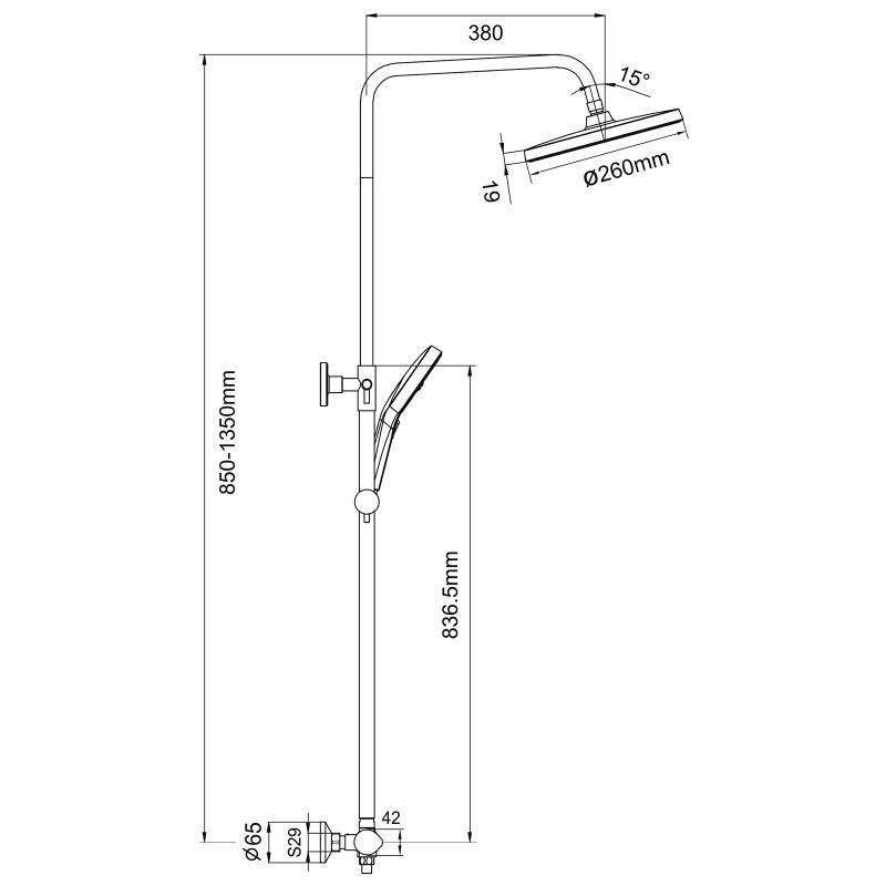 - высота душевой стойки: 850-1350 мм