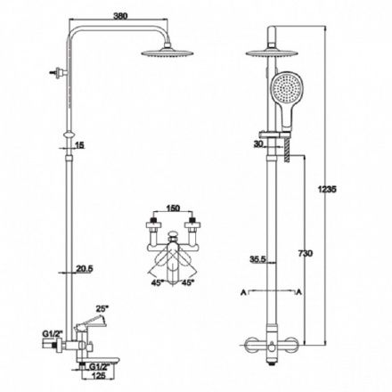 Размер верхнего душа, см:22