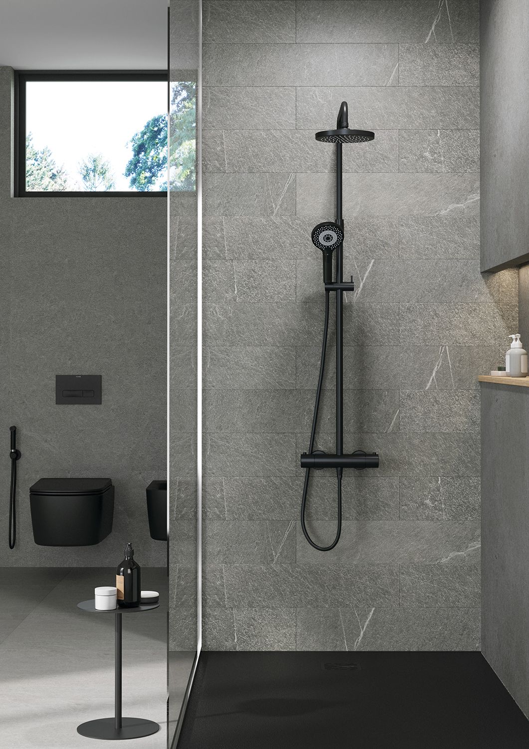 Душевая стойка Kludi Dive 6907939-00 с термостатом чёрный матовый