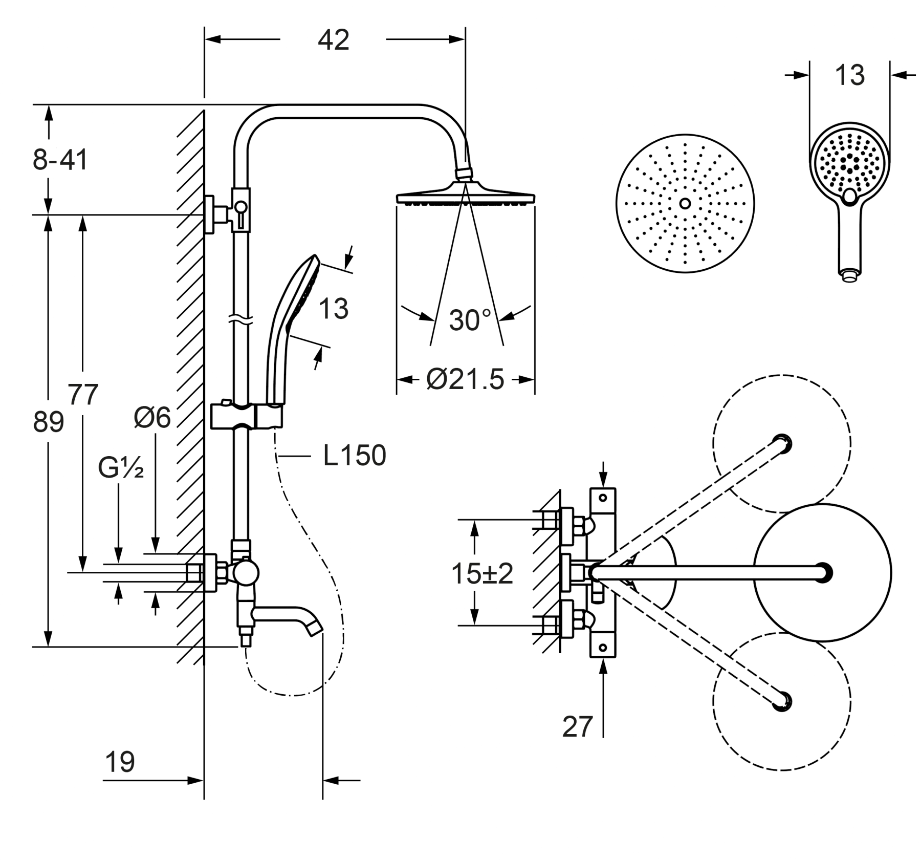 верхний душ, ручной душ, душевой шланг, s-образные эксцентрики, набор прокладок