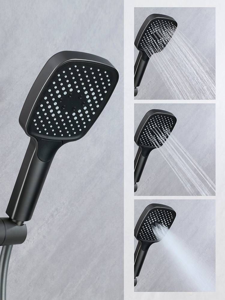 Ручной душ с 3 режимами работы также регулируется по высоте и наклону для оптимального комфорта использования.