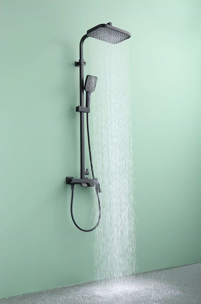 Душевая система Raglo R02.24.06Цвет: черный.Материал: латунь.Управление: однорычажное.Механизм: керамический картридж.Излив: поворотный. Аэратор.Тип излива: каскадный.Регулируемая по высоте душевая штанга: 1082-1650 мм.Форма верхнего душа: прямоугольная.Размер верхнего душа (ШхД): 315х208 мм.Регулируемый по высоте и наклону держатель ручного душа.Форма ручного душа: прямоугольная.Количество режимов струи ручного душа: 3.Отверстия для монтажа: 3.Стандарт подводки: G 1/2.Монтаж: на стену.