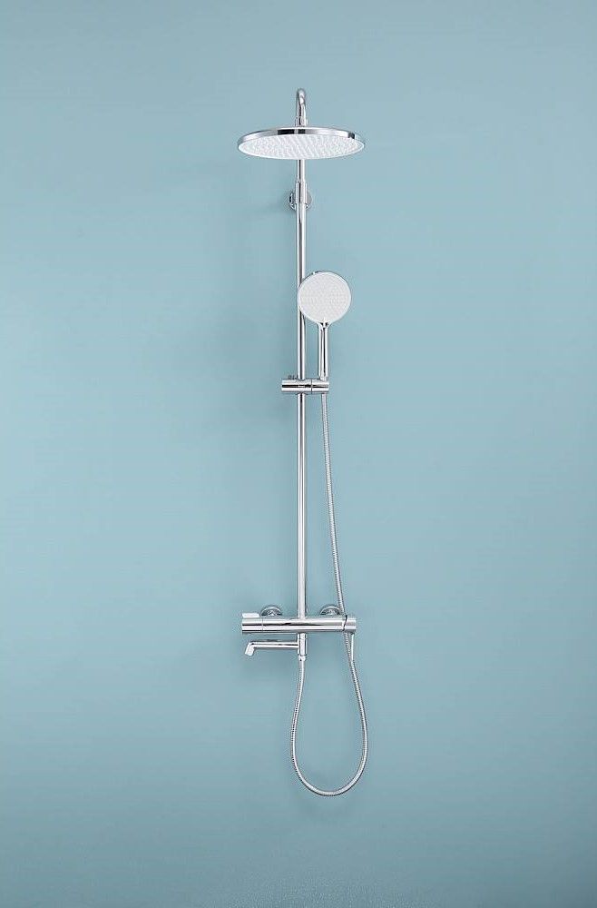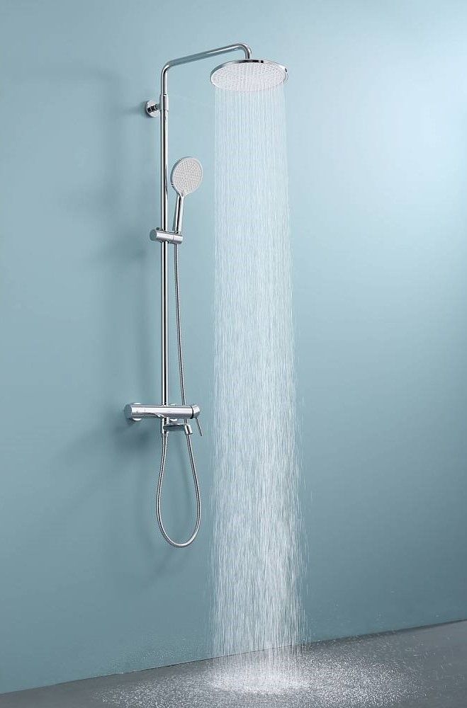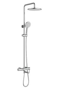 Душевая система Raglo R20.24.Цвет: хром.Материал: латунь.Управление: однорычажное.Механизм: керамический картридж.Излив: поворотный. Аэратор.Регулируемая по высоте душевая штанга: 1130-1480 мм.Форма верхнего душа: круглая.Диаметр верхнего душа: 250 мм.Регулируемый по высоте и наклону держатель ручного душа.Форма ручного душа: круглая.Количество режимов струи ручного душа: 3.Отверстия для монтажа: 3.Стандарт подводки: G 1/2.Монтаж: на стену.