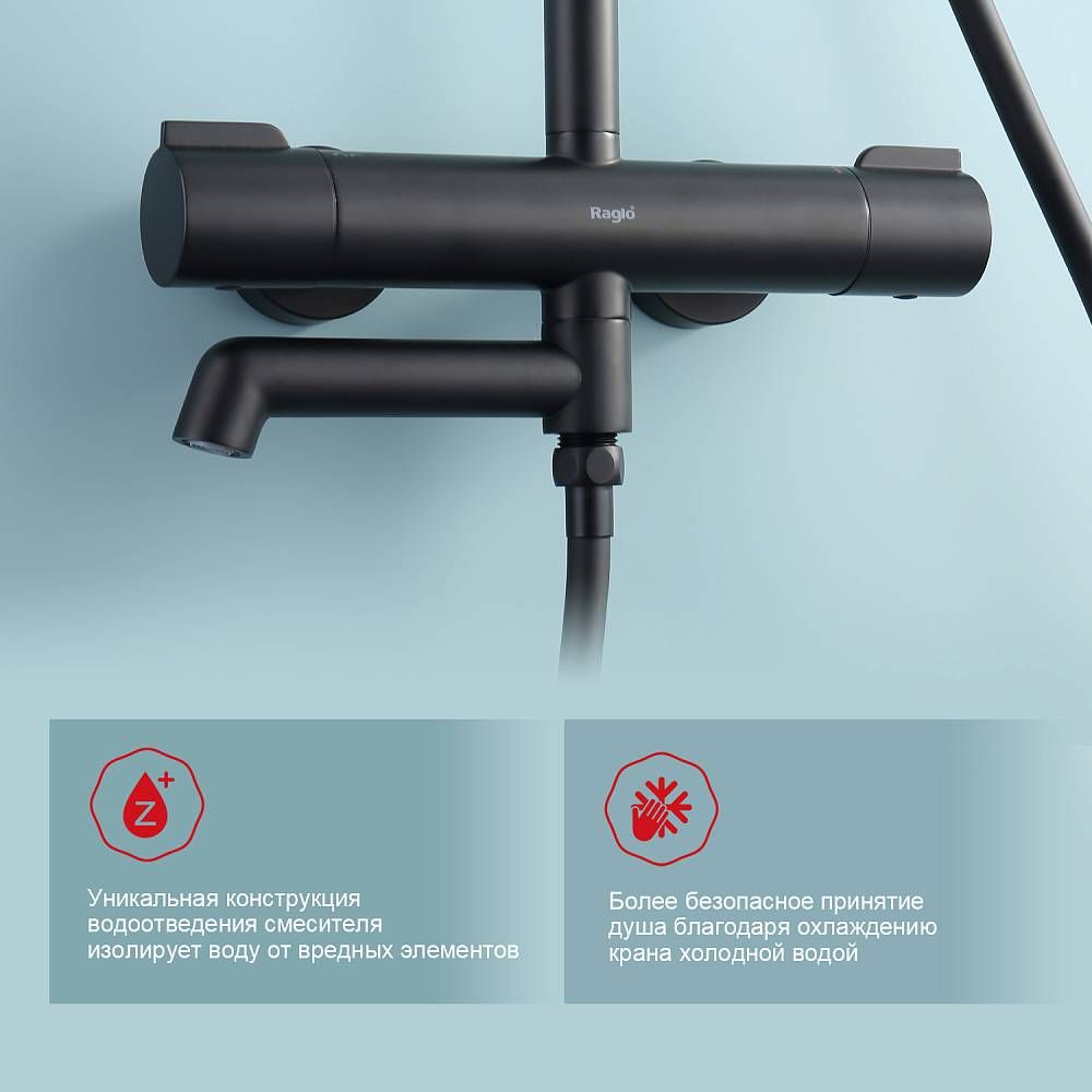 Душевая стойка Raglo R20.26.06 с термостатом чёрный купить