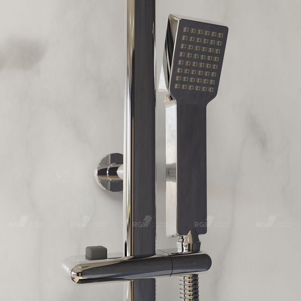 Головной душ Нержавеющая сталь 200х200 мм. Ручной душ ABS, 1 функция. Термосмеситель.Излив поворотный RGW SP-159 приобретается отдельноПредставляем Вашему вниманию душевую стойку из коллекции Shower Panels.Каждая деталь этой душевой стойки составляет общее представление о стиле и лаконичности, а благодаря компактному размещение-разгружает общее пространство.Сегодня такое решение является дополнением к современному дизайну.Помимо визуальной составляющей душевая стойка выполнена по наивысшим стандартам качества.Такое расположение позволяло максимально разгрузить пространство санузлов и выделить для душа совсем небольшой уголок.