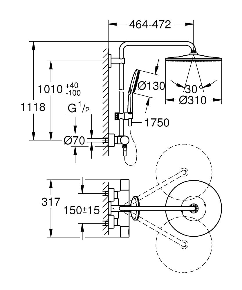 - Размер верхнего душа, см:31