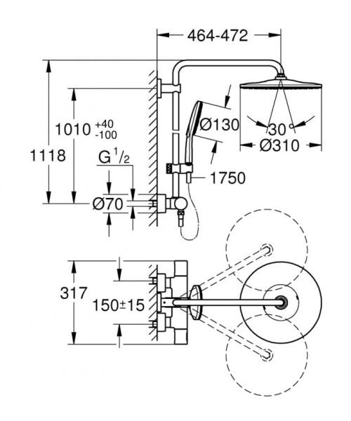 GROHE FastFixation быстрый монтаж за счет регулируемого верхнего крепления