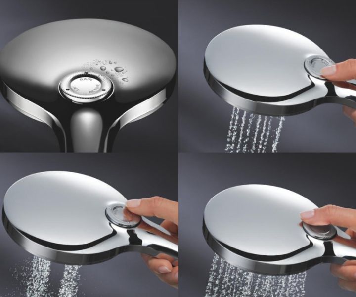 GROHE SmartTip выбор режима струи одним нажатием пальца (на кольцо круглой кнопки)