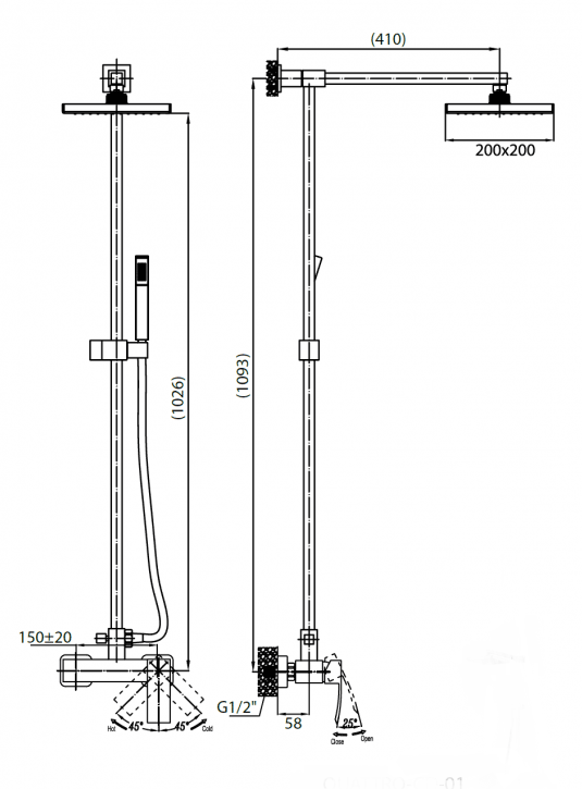 Размер верхнего душа: 20 см