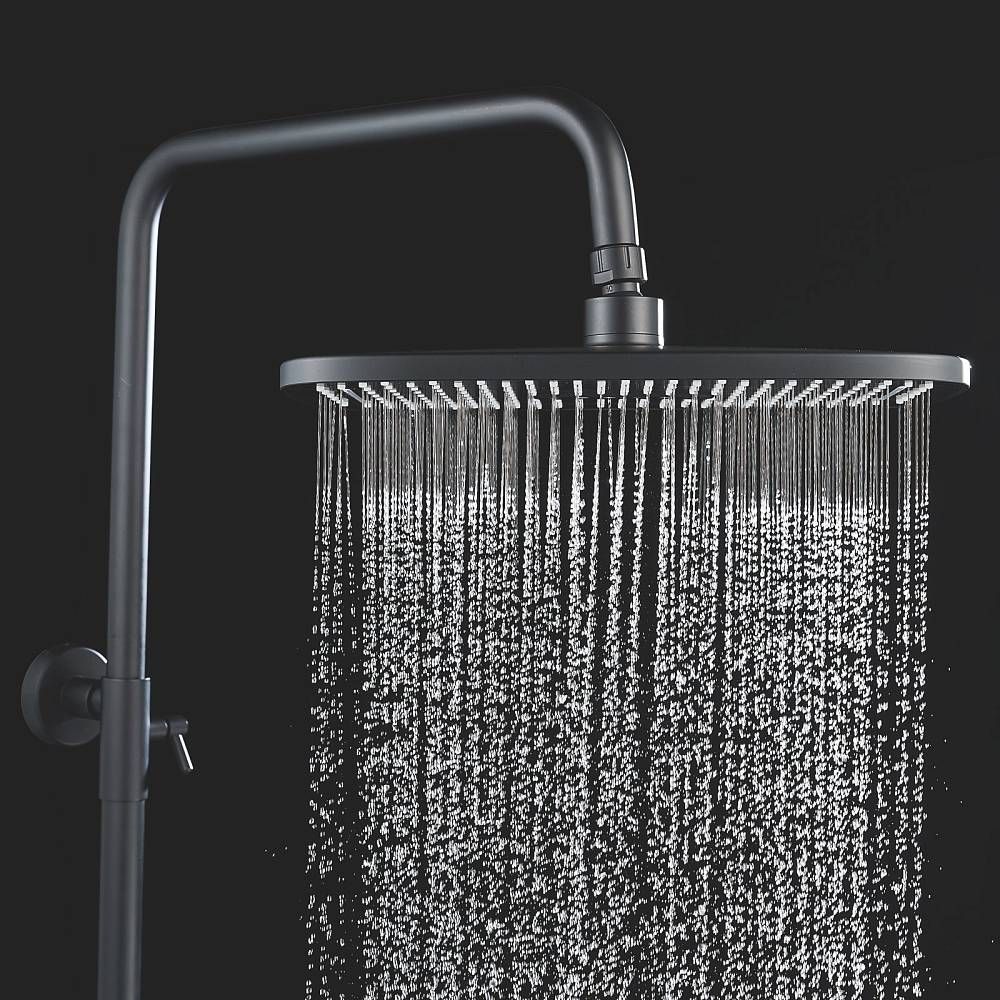 Верхний душ размером 310x210 мм из ABS-пластика легко регулируется по наклону благодаря встроенному шарниру. Он также оснащен самоочищающимися силиконовыми форсунками, которые защищают его от известкового налета, обеспечивая всегда чистый и сильный поток воды.