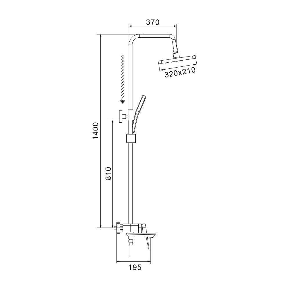 Верхний душ из ABS пластика размером 320х210 мм с силиконовыми форсунками, которые легко очищаются от известкового налета, подарит вам роскошные ощущения от душа. Благодаря встроенному шарниру, верхний душ регулируется по наклону вдоль всей оси, подстраиваясь под ваши предпочтения.