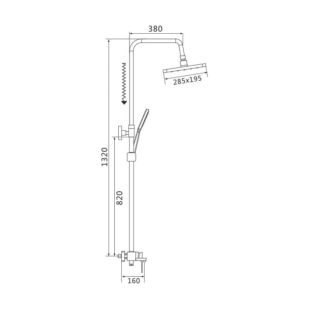 Верхний душ прямоугольной формы, изготовлен из ABS пластика. Оснащен силиконовыми форсунками, которые легко очищаются от известкового налета. Благодаря шарниру, верхний душ регулируется по наклону по всей оси. Размер верхнего душа составляет 285х195 мм.