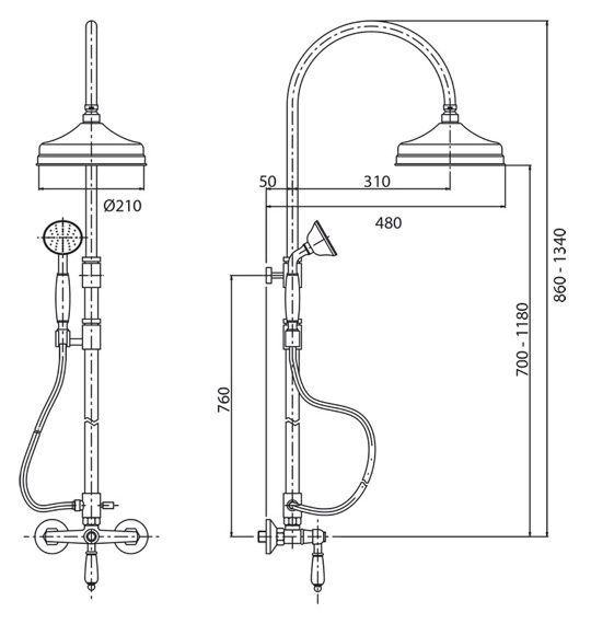 Оснащение: верхний душ,душевая лейка, шланг для душа, держатель душа, дивертор, смеситель